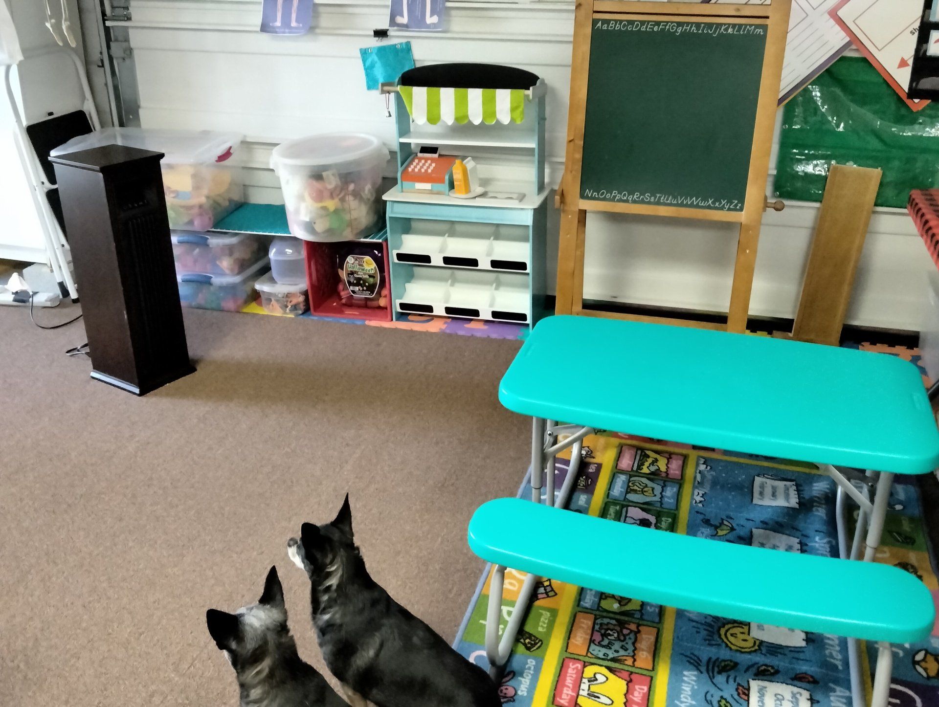 Toddlers and pre-kindergarteners learn while they enjoy playing with kid-friendly toys (and canine visitors!)
